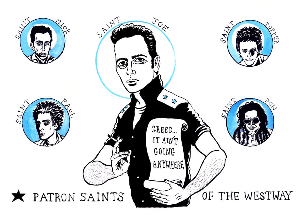 Joe Strummer, Mick Jones, Paul Simenon and Topper Headon of the Clash along with Don Letts, DJ and film maker... patron saints of the Westway